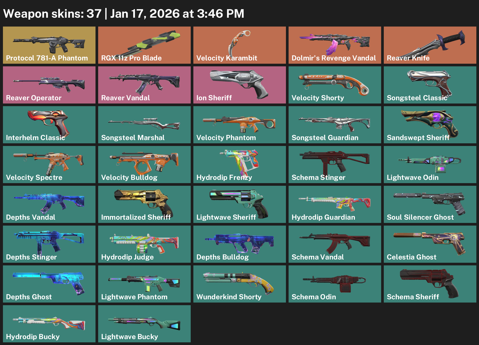 Protocol 781-A Phantom, RGX 11z Pro Blade, Velocity Karambit, Reaver Knife, Ion Sheriff, Songsteel Classic, Hydrodip Frenzy, Schema Stinger, Lightwave Odin, Depths Vandal, Soul Silencer Ghost