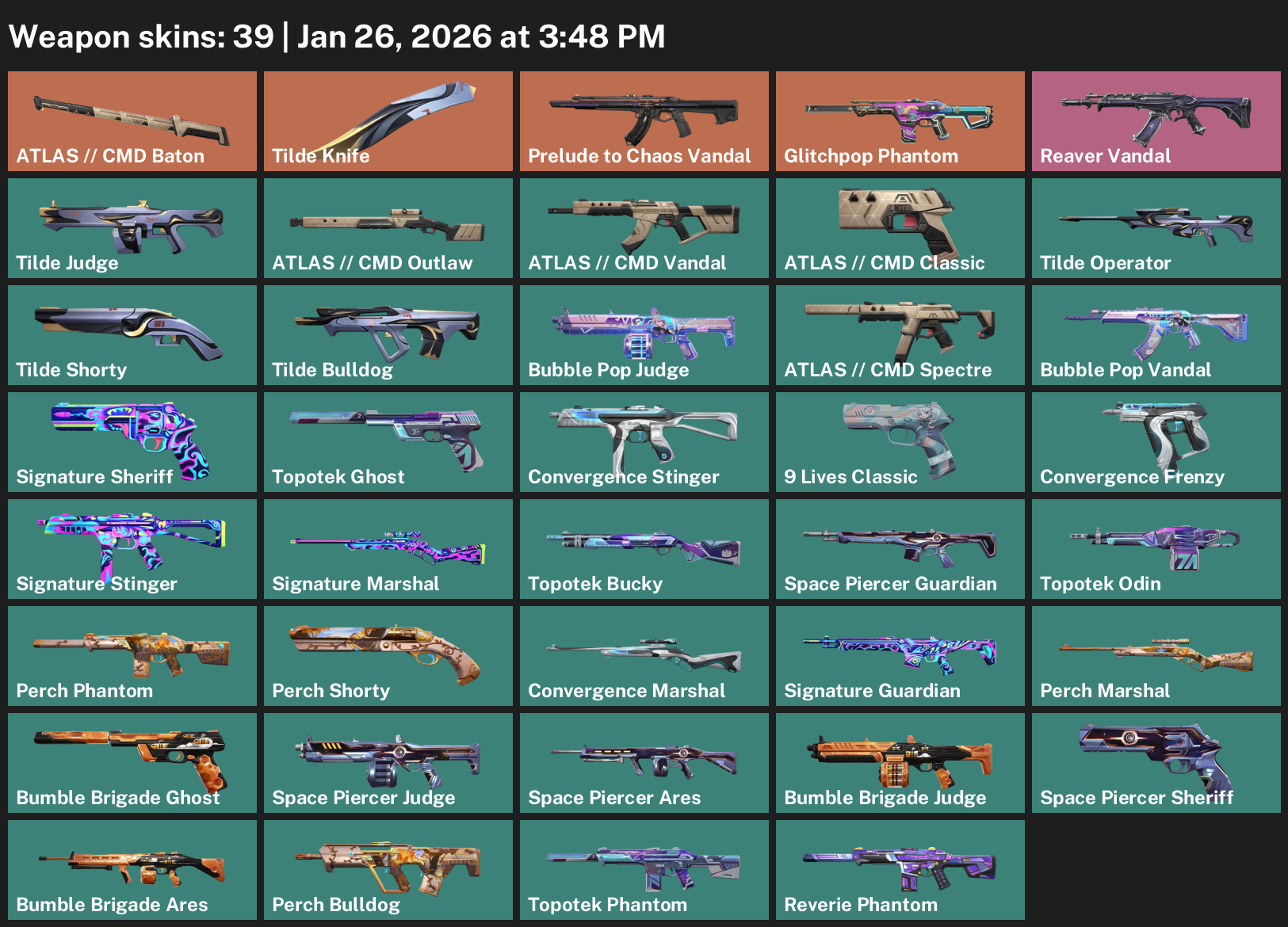 EU | 39 Skins | exp GOLD 1 | Reaver Vandal | Prelude to Chaos Vandal | Glitchpop Phantom | Tilde Knife | Topotek Phantom | #GEQ6303