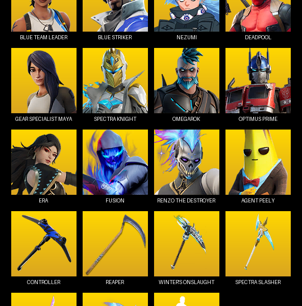 Velocity Karambit, Outpost Melee, Prism III Axe, Reaver Vandal, Infinity Spectre, Cavalier Ghost, Schema Sheriff, Aerosol Shorty