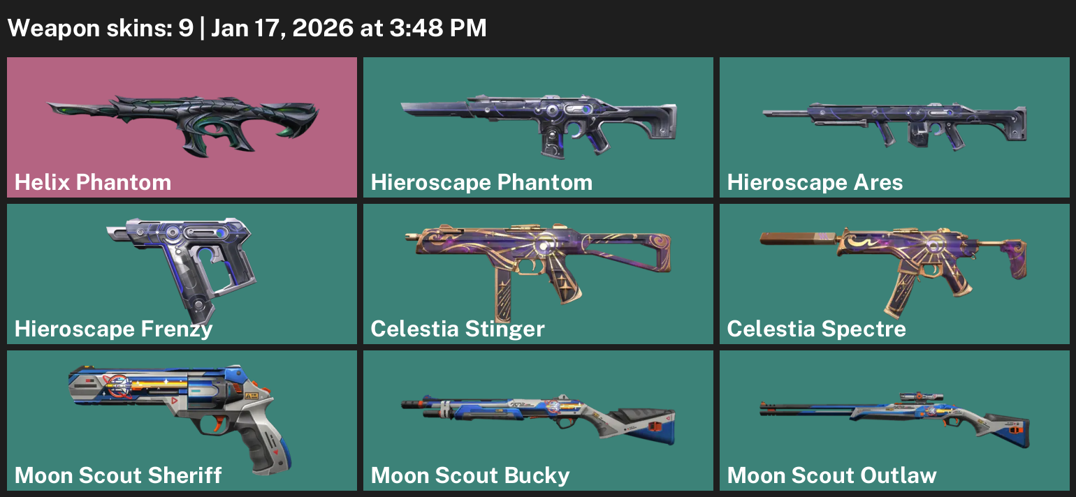 Helix Phantom, Hieroscape Ares, Celestia Stinger, Moon Scout Sheriff