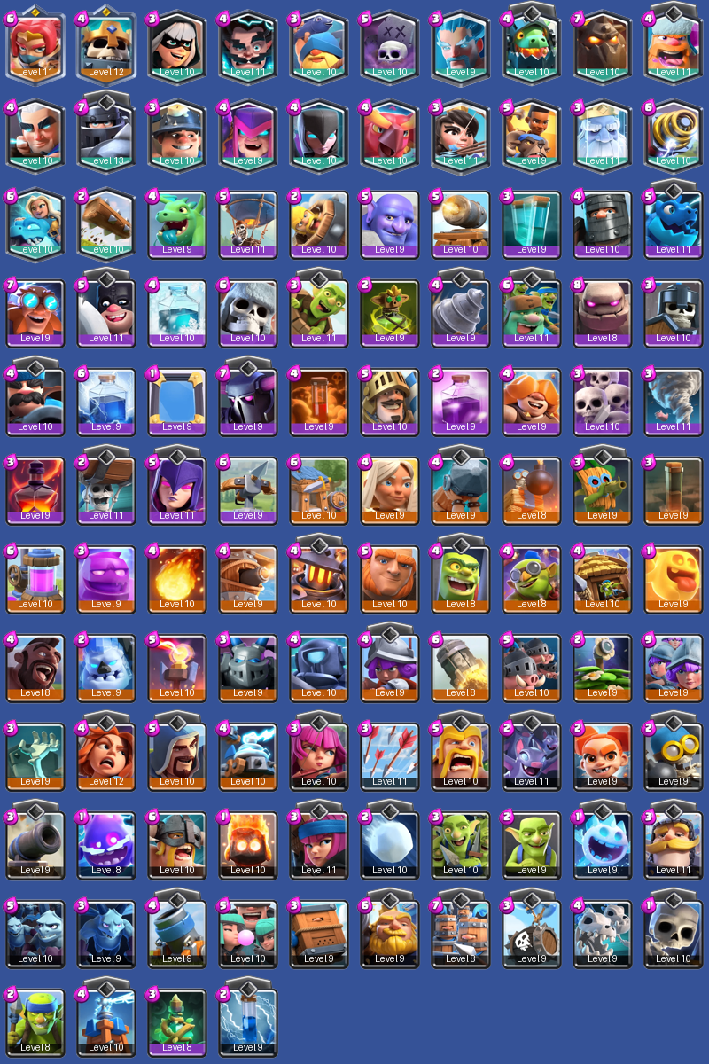 Epic -> Pekka, Balloon, Witch, Golem, SkeletonArmy, BabyDragon, Prince, GiantSkeleton, SkeletonWarriors, DarkPrince, Bowler, Hunter, AxeMan, MovingCannon, Wallbreakers, GoblinGiant, ElectroDragon, ElectroGiant, GiantBuffer, Xbow, GoblinDrill, Rage, GoblinBarrel, Freeze, Mirror, Lightning, Poison, Tornado, Clone, BarbLog, DarkMagic, GoblinCurse