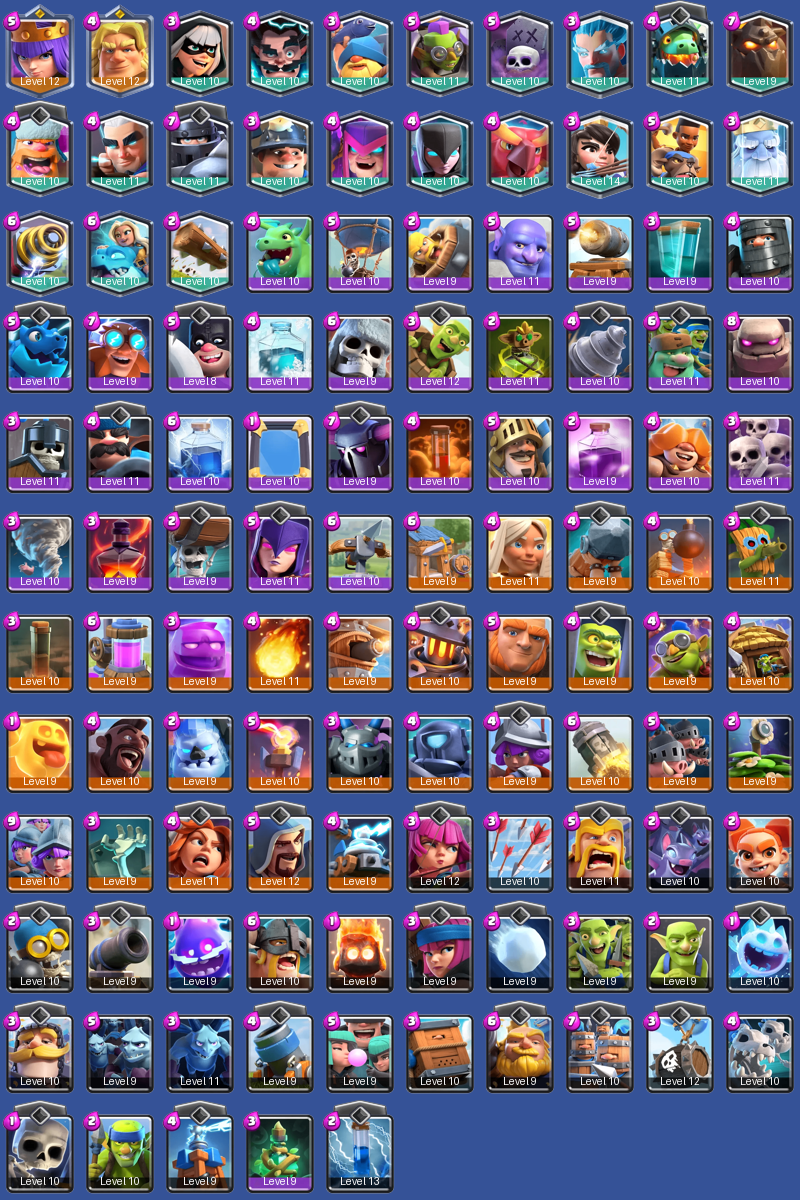 Epic -> Pekka, Balloon, Witch, Golem, SkeletonArmy, BabyDragon, Prince, GiantSkeleton, SkeletonWarriors, DarkPrince, Bowler, Hunter, AxeMan, MovingCannon, Wallbreakers, GoblinGiant, ElectroDragon, ElectroGiant, GiantBuffer, Xbow, GoblinDrill, Rage, GoblinBarrel, Freeze, Mirror, Lightning, Poison, Tornado, Clone, BarbLog, DarkMagic, GoblinCurse