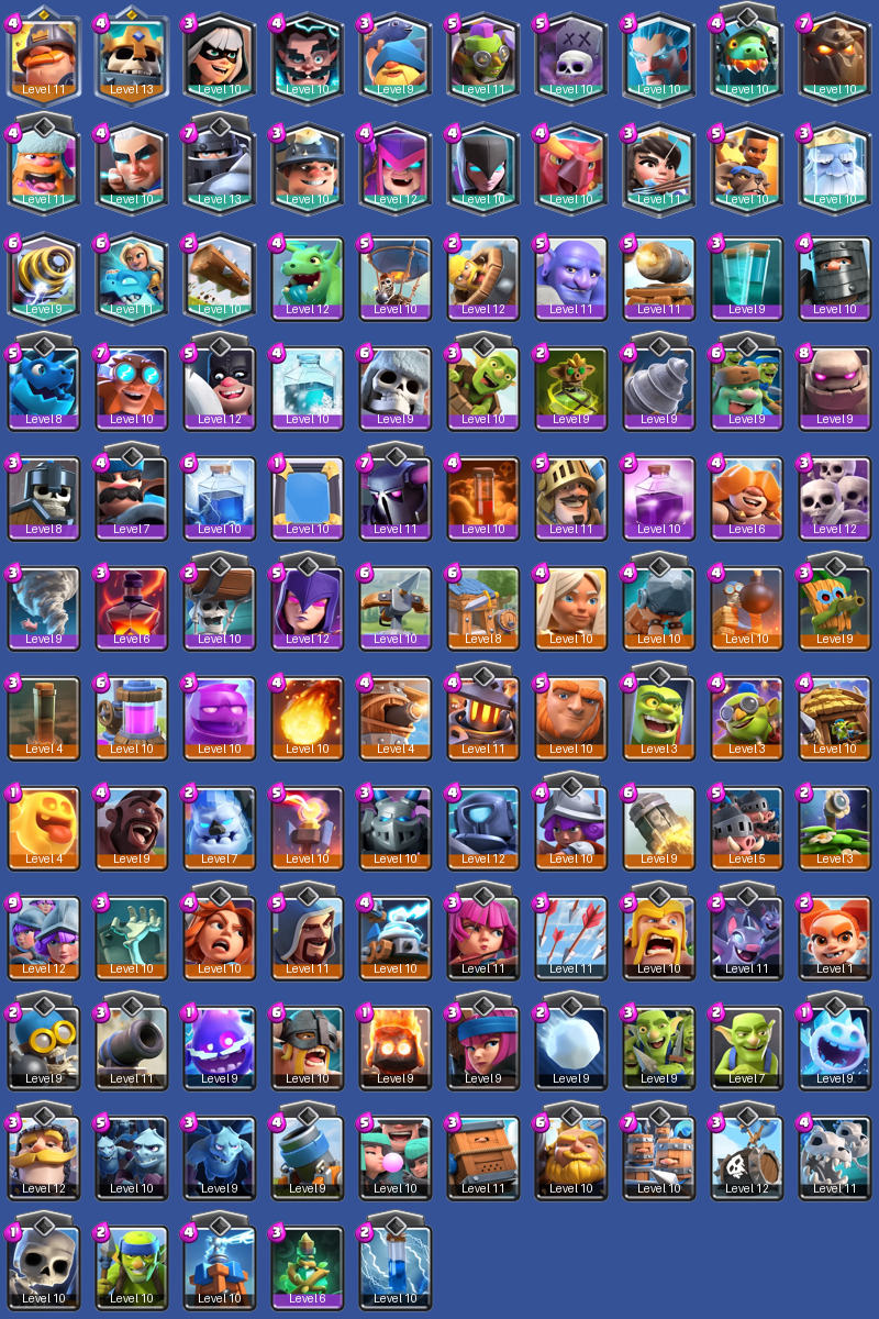 Epic -> Pekka, Balloon, Witch, Golem, SkeletonArmy, BabyDragon, Prince, GiantSkeleton, SkeletonWarriors, DarkPrince, Bowler, Hunter, AxeMan, MovingCannon, Wallbreakers, GoblinGiant, ElectroDragon, ElectroGiant, GiantBuffer, Xbow, GoblinDrill, Rage, GoblinBarrel, Freeze, Mirror, Lightning, Poison, Tornado, Clone, BarbLog, DarkMagic, GoblinCurse
