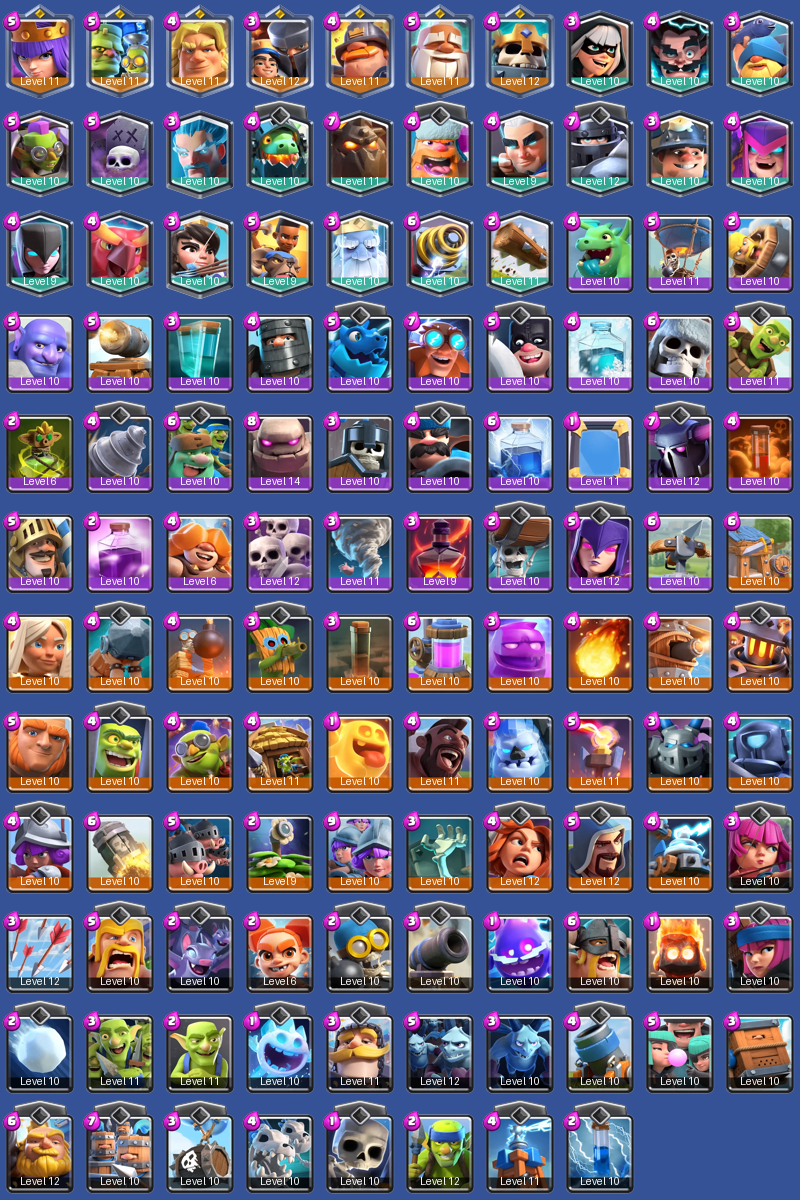 Epic -> Pekka, Balloon, Witch, Golem, SkeletonArmy, BabyDragon, Prince, GiantSkeleton, SkeletonWarriors, DarkPrince, Bowler, Hunter, AxeMan, MovingCannon, Wallbreakers, GoblinGiant, ElectroDragon, ElectroGiant, GiantBuffer, Xbow, GoblinDrill, Rage, GoblinBarrel, Freeze, Mirror, Lightning, Poison, Tornado, Clone, BarbLog, DarkMagic, GoblinCurse