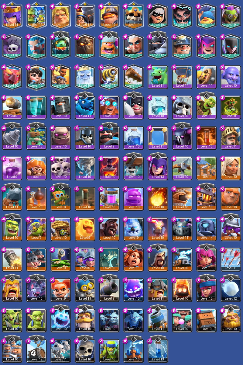 Epic -> Pekka, Balloon, Witch, Golem, SkeletonArmy, BabyDragon, Prince, GiantSkeleton, SkeletonWarriors, DarkPrince, Bowler, Hunter, AxeMan, MovingCannon, Wallbreakers, GoblinGiant, ElectroDragon, ElectroGiant, GiantBuffer, Xbow, GoblinDrill, Rage, GoblinBarrel, Freeze, Mirror, Lightning, Poison, Tornado, Clone, BarbLog, DarkMagic, GoblinCurse