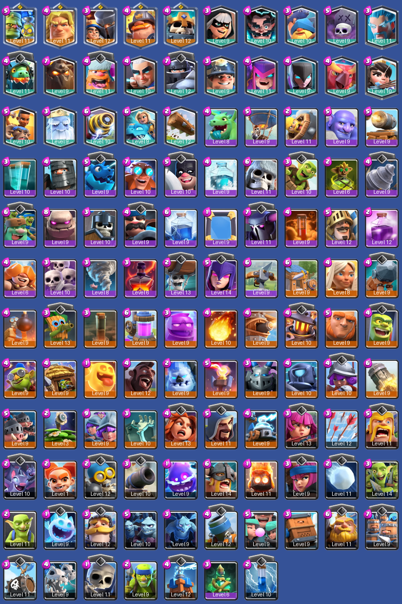 Epic -> Pekka, Balloon, Witch, Golem, SkeletonArmy, BabyDragon, Prince, GiantSkeleton, SkeletonWarriors, DarkPrince, Bowler, Hunter, AxeMan, MovingCannon, Wallbreakers, GoblinGiant, ElectroDragon, ElectroGiant, GiantBuffer, Xbow, GoblinDrill, Rage, GoblinBarrel, Freeze, Mirror, Lightning, Poison, Tornado, Clone, BarbLog, DarkMagic, GoblinCurse