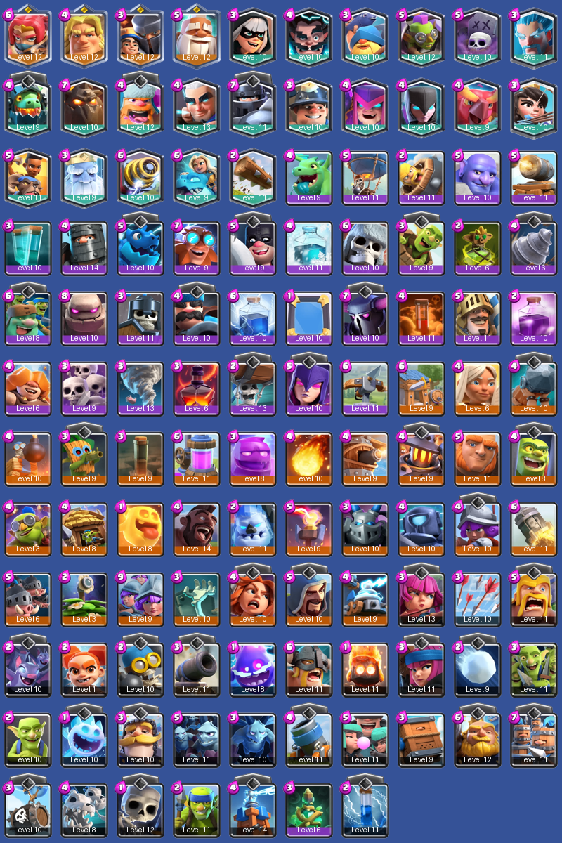 Epic -> Pekka, Balloon, Witch, Golem, SkeletonArmy, BabyDragon, Prince, GiantSkeleton, SkeletonWarriors, DarkPrince, Bowler, Hunter, AxeMan, MovingCannon, Wallbreakers, GoblinGiant, ElectroDragon, ElectroGiant, GiantBuffer, Xbow, GoblinDrill, Rage, GoblinBarrel, Freeze, Mirror, Lightning, Poison, Tornado, Clone, BarbLog, DarkMagic, GoblinCurse