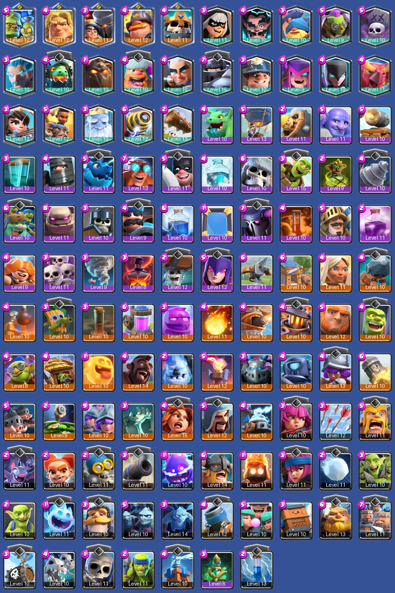 Epic -> Pekka, Balloon, Witch, Golem, SkeletonArmy, BabyDragon, Prince, GiantSkeleton, SkeletonWarriors, DarkPrince, Bowler, Hunter, AxeMan, MovingCannon, Wallbreakers, GoblinGiant, ElectroDragon, ElectroGiant, GiantBuffer, Xbow, GoblinDrill, Rage, GoblinBarrel, Freeze, Mirror, Lightning, Poison, Tornado, Clone, BarbLog, DarkMagic, GoblinCurse