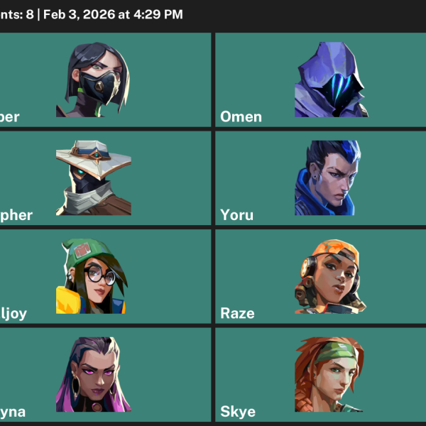 Gekko, Yoru, Cypher, Breach, Iso, Killjoy, Chamber, Astra, Raze, Reyna, Deadlock, Neon, Harbor, Vyse, Clove, Skye, Fade, Omen, Viper, KAY/O