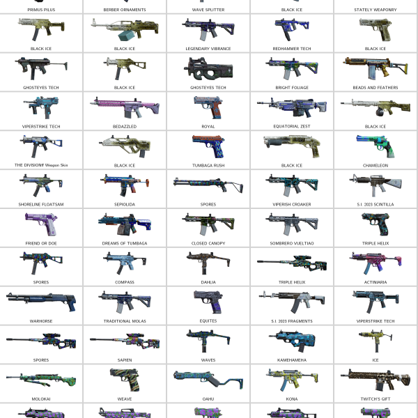 – Plaid Allegiance (P-10C), Mac Daddy (D-50), Bismuth (SASG-12)