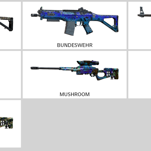 – C7E, MP5, M590A1, SG-CQB, F2, P12, Keratos, 5.7 USG, Mk 14 EBR, G8A1…