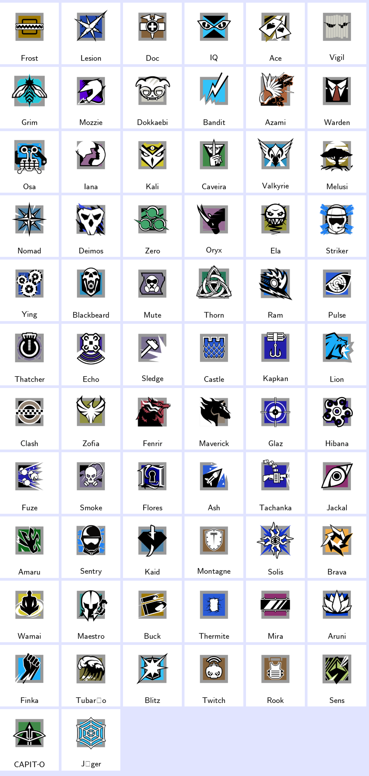 Some Operators: Frost, Lesion, Doc, Iq, Ace, Vigil, Grim, Mozzie, Dokkaebi, Bandit…