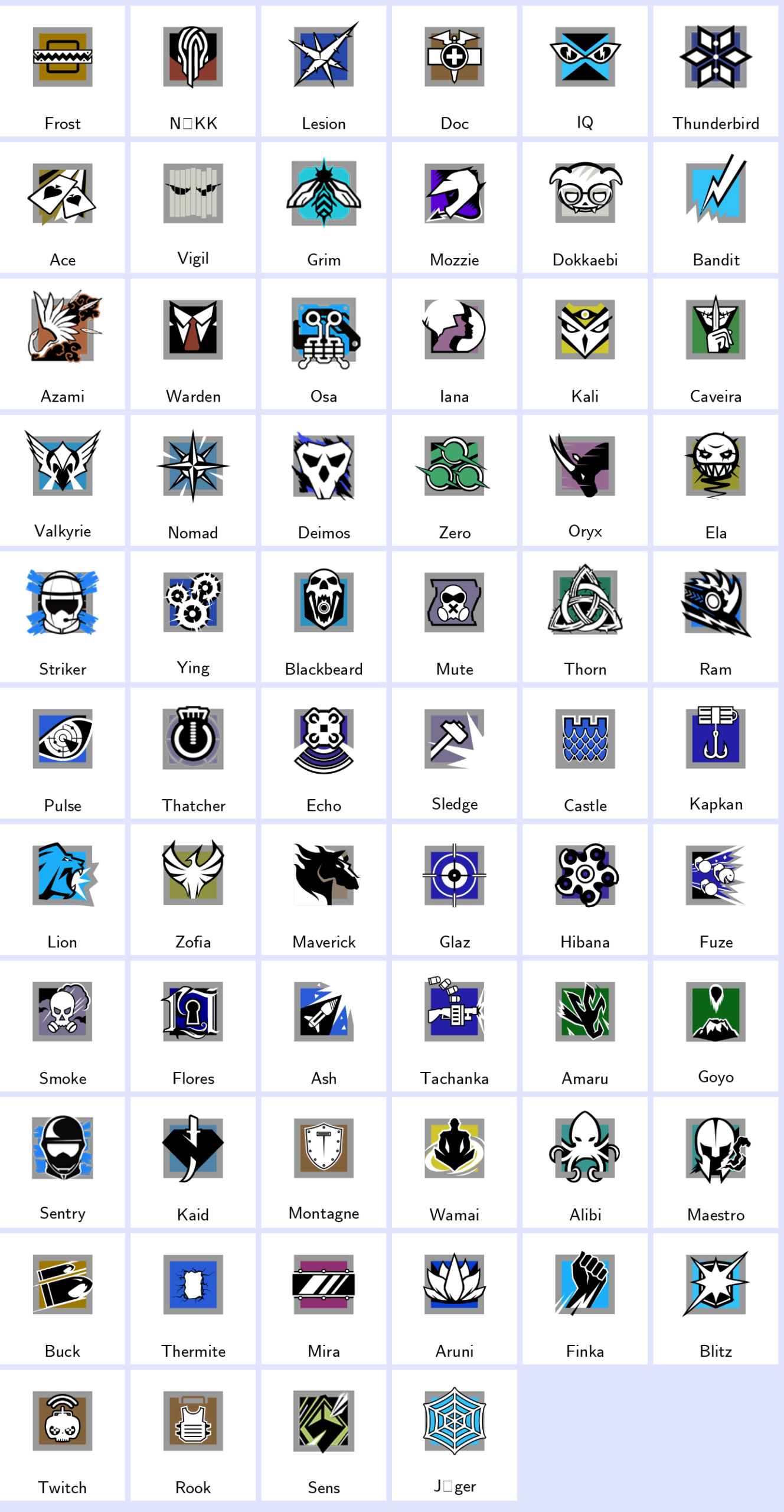 Some Operators: Frost, Nokk, Lesion, Doc, Iq, Thunderbird, Ace, Vigil, Grim, Mozzie…