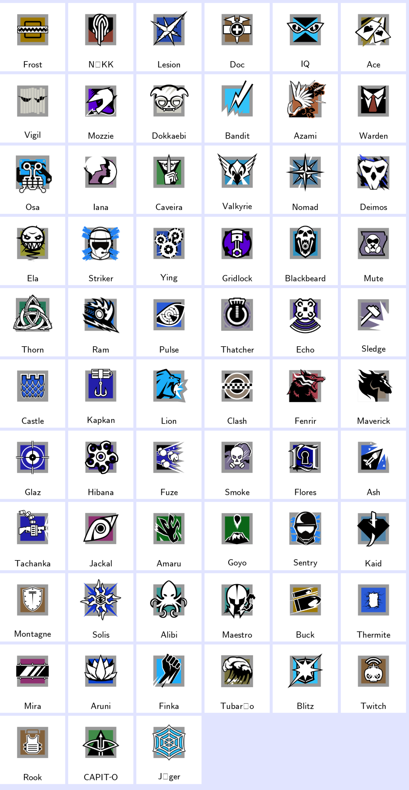 Some Operators: Frost, Nokk, Lesion, Doc, Iq, Ace, Vigil, Mozzie, Dokkaebi, Bandit…