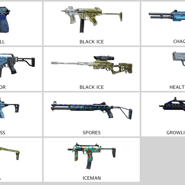 – Lovelace (F2), Metallurgic Burn (9mm C1), Unbreakable Shine (CSRX300), Yeouiju (K1A), Gladius (ALDA 5.56), Ferocious Green (MP7)…