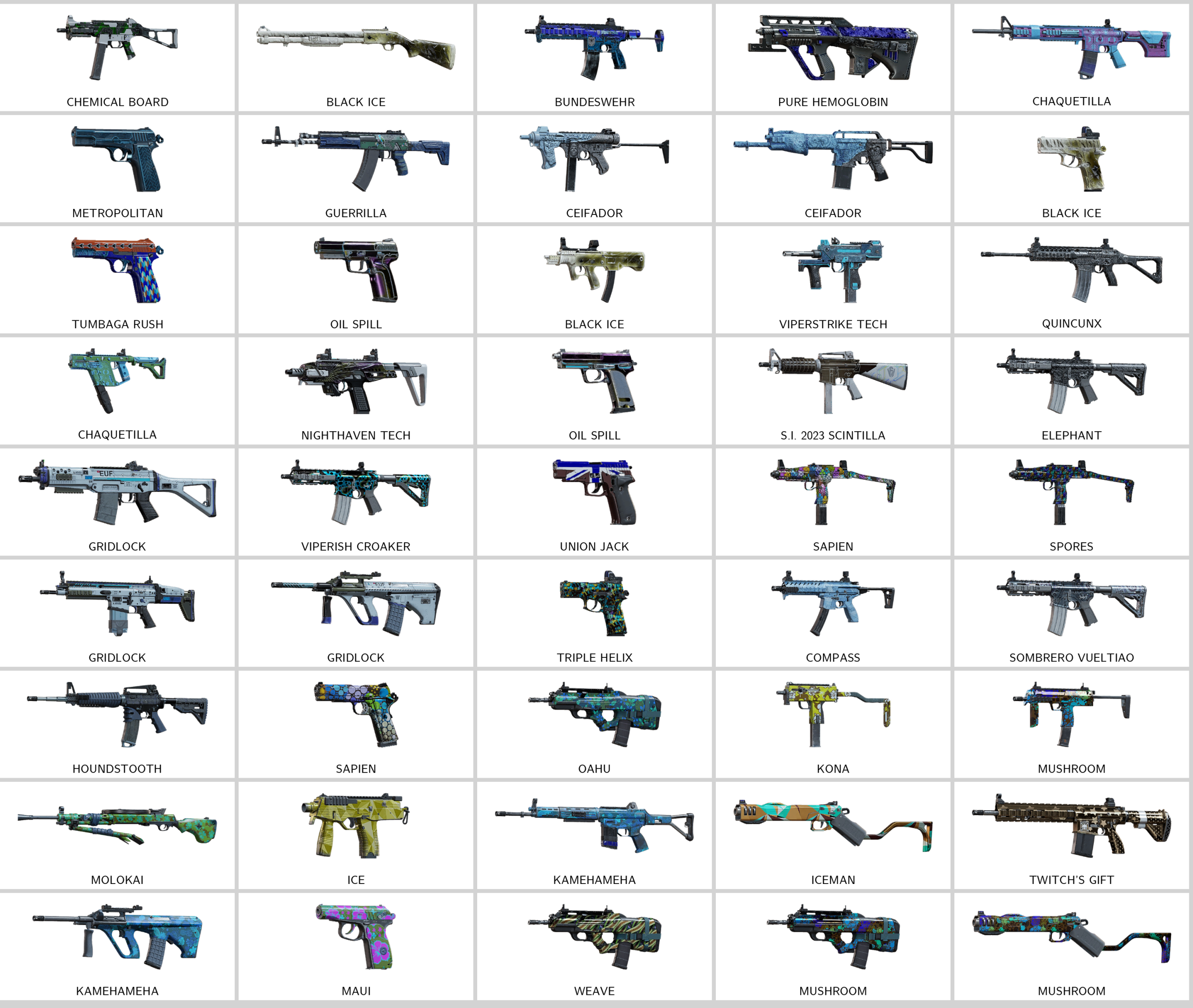 Some of Other Skins: Predator Fate (CSRX300), Ceifador (SPAS-15), Target (R4C), Wild Instinct (TCSG12), Nighthaven Tech (P10 Roni), Venetian Posh (Keratos), Bundeswehr (416-C), Chaquetilla (C7E)…