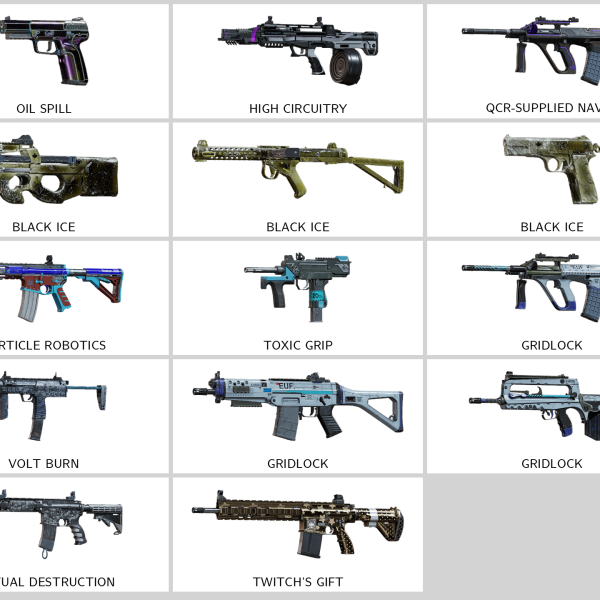 – Brass Pummeler (FO-12), Conduit (SMG-11), Grim Tally (Vector), Space Martian (F2)