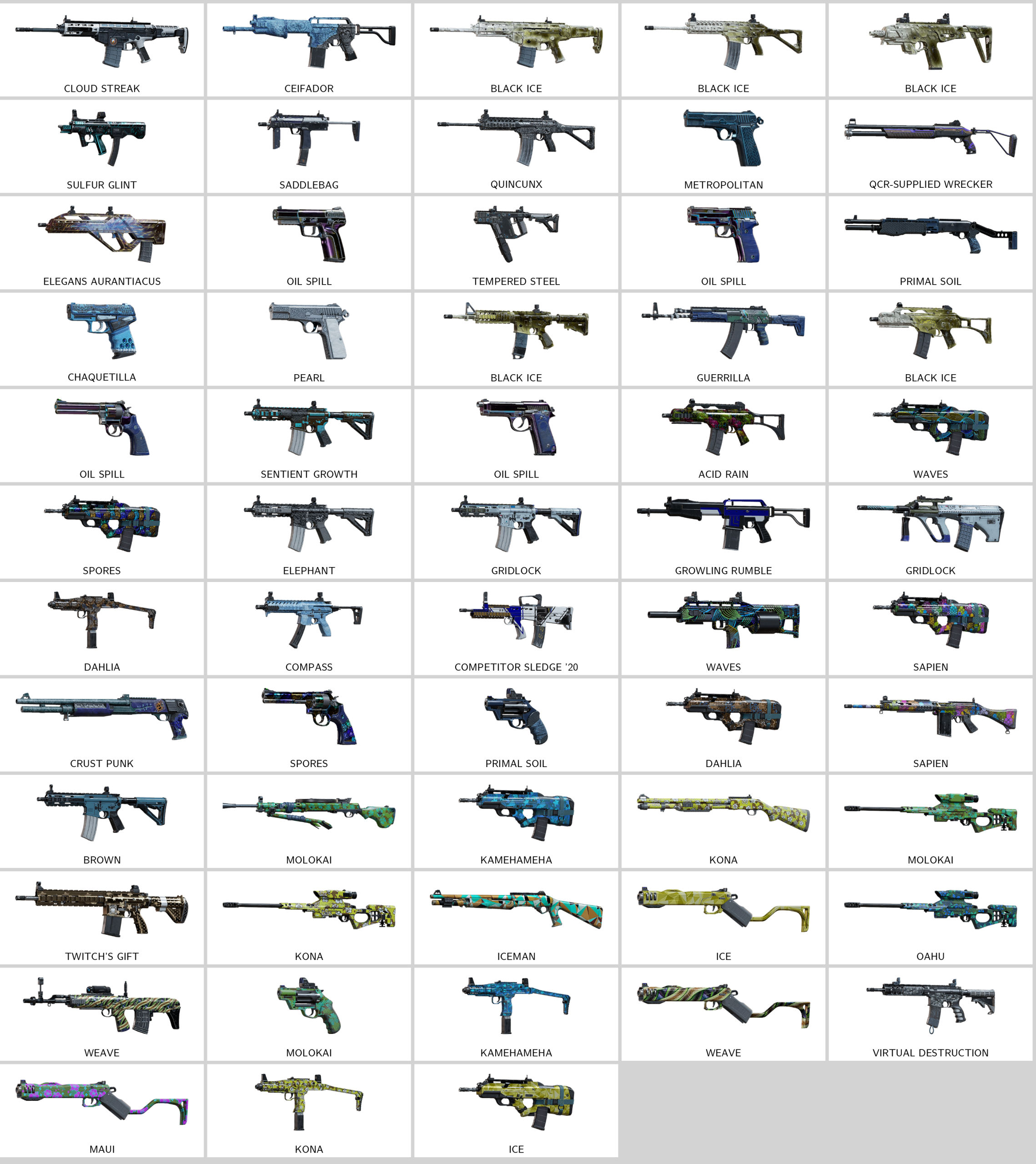Some of Other Skins: Gleipnir (MP7), Glory (M45 Meusoc), Fatal Koi (Supernova), Ceifador (SPAS-15), Cloud Streak (ARX200), New Notches (P226), Target (R4C), Cloud Streak (G36C)…