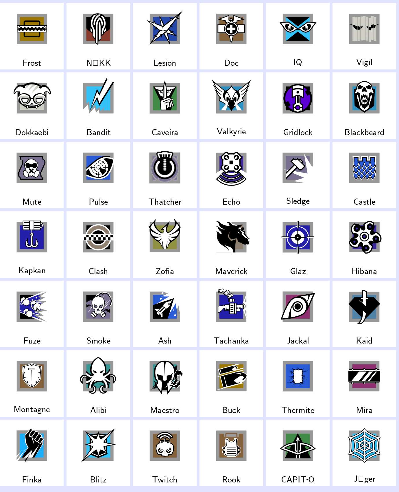 Some Operators: Frost, Nokk, Lesion, Doc, Iq, Vigil, Dokkaebi, Bandit, Caveira, Valkyrie…