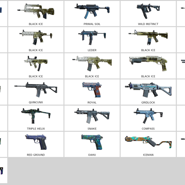 Some of Other Skins: Bundeswehr (P12), Tentacles (P229), Bundeswehr (552 Commando), Requin (F2), Sandstorm (Type-89), Bundeswehr (416-C), Leder (G8A1), Oil Spill (P9)…
