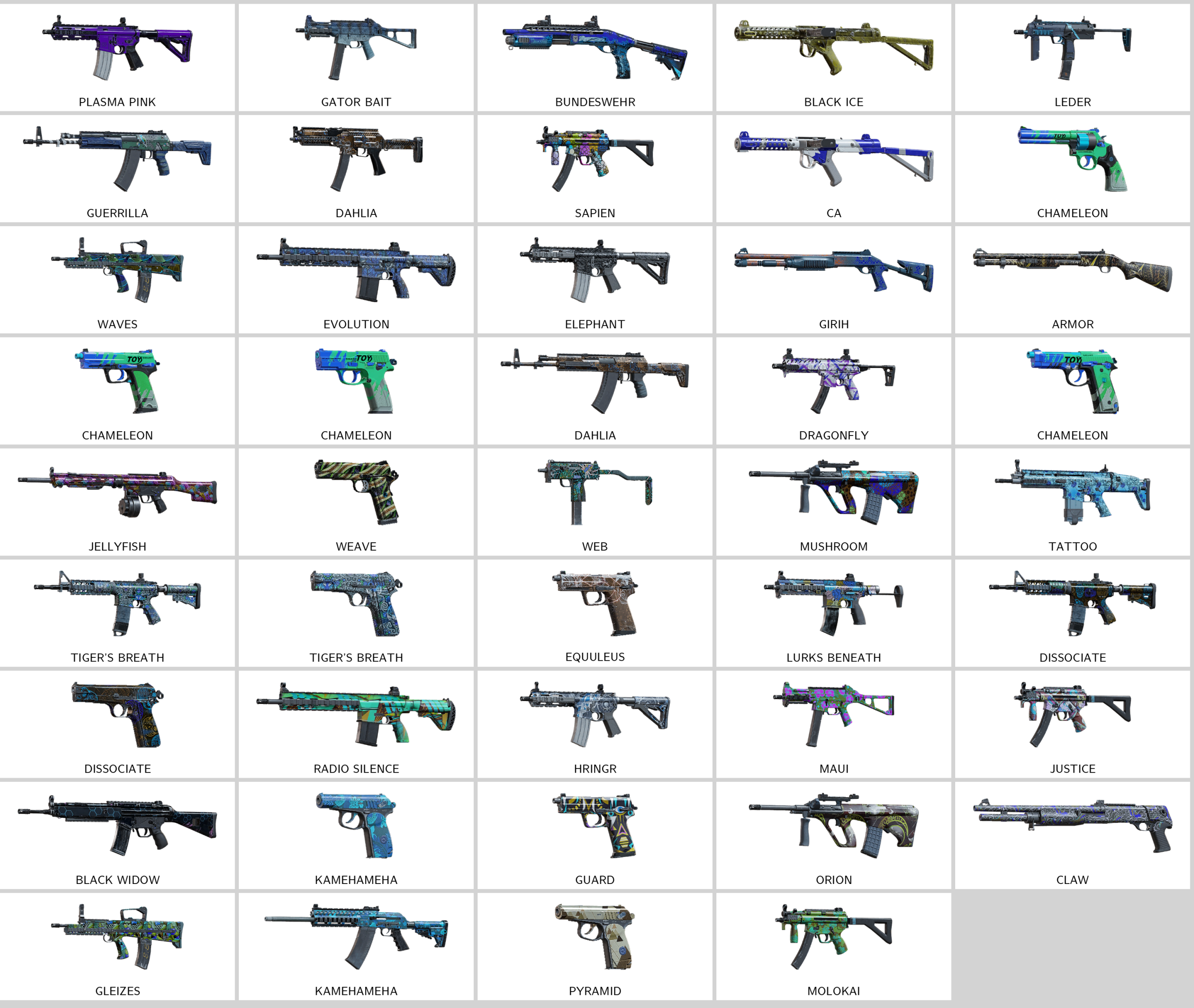 Some of Other Skins: Leder (M870), Ceifador (PARA-308), Engraved (MP5K), Khokhloma (AK12), Bundeswehr (M870), Khokhloma (PMM), Clockwork (FMG-9), Pustoy (6P41)…