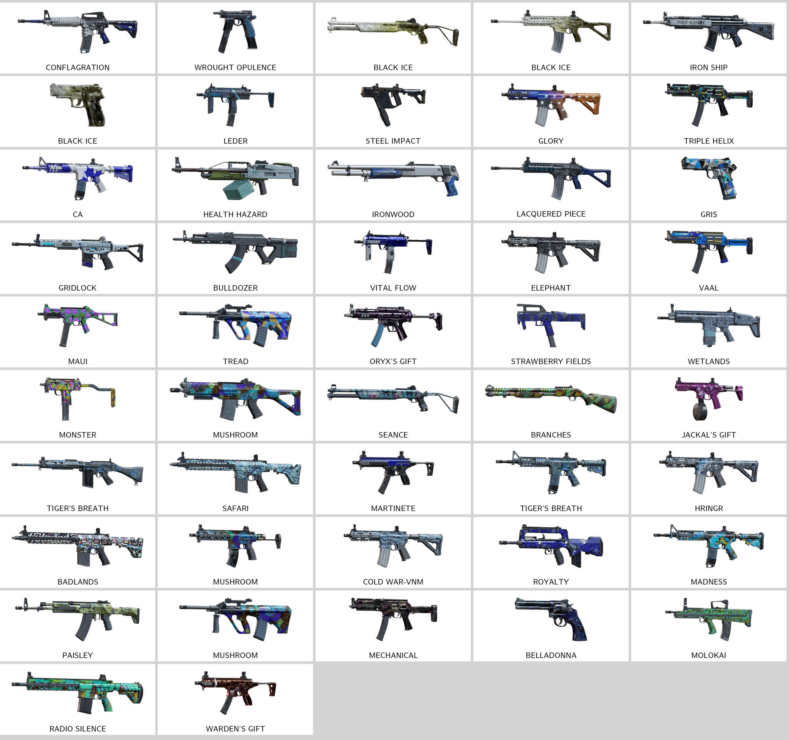 Some of Other Skins: Takka (MPX), Commemoration (M762), Engraved (MP5K), Steel Impact (Vector), Glory (R4C), Leder (MP7), Monolithic (D-50), Iron Ship (AR33)…