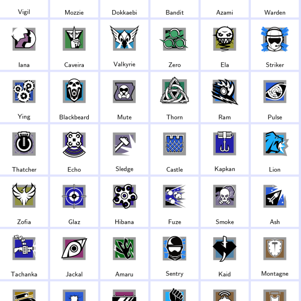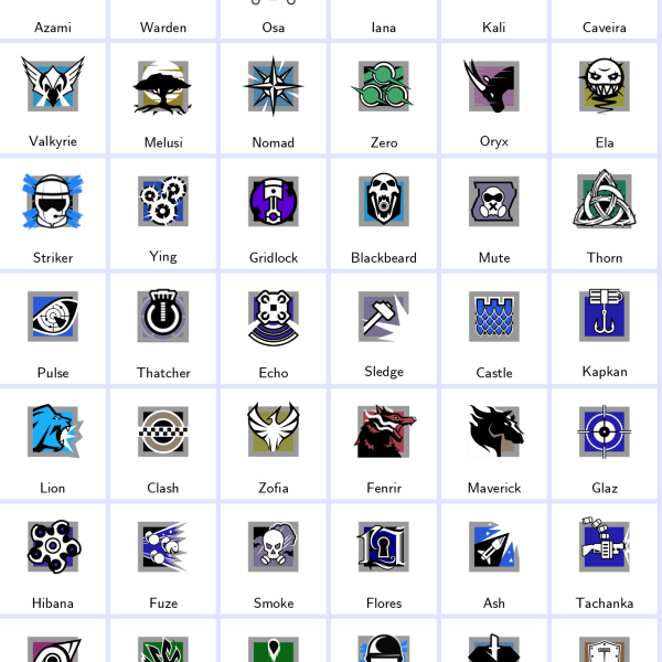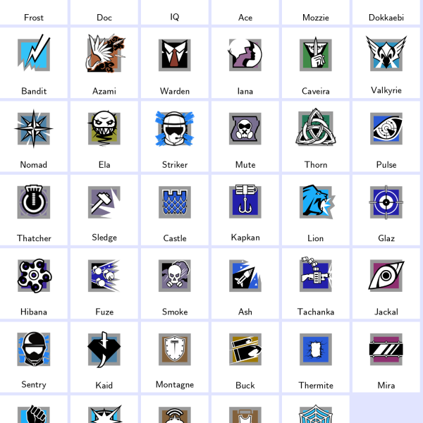 Some Operators: Frost, Nokk, Lesion, Doc, Iq, Thunderbird, Ace, Vigil, Grim, Mozzie…