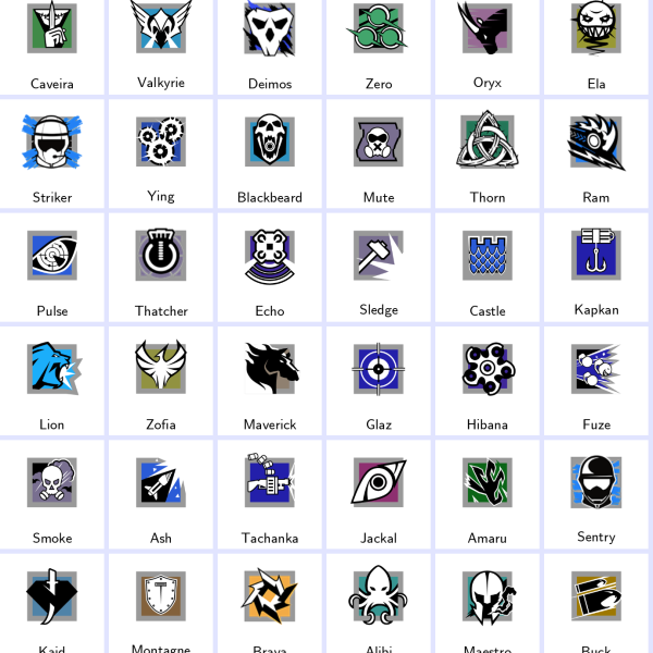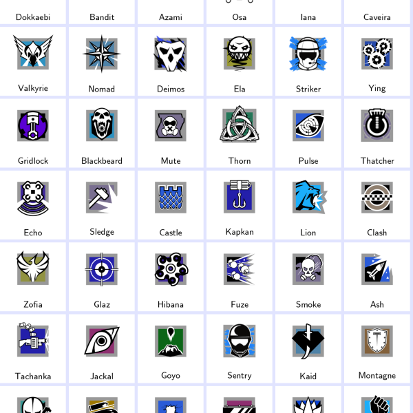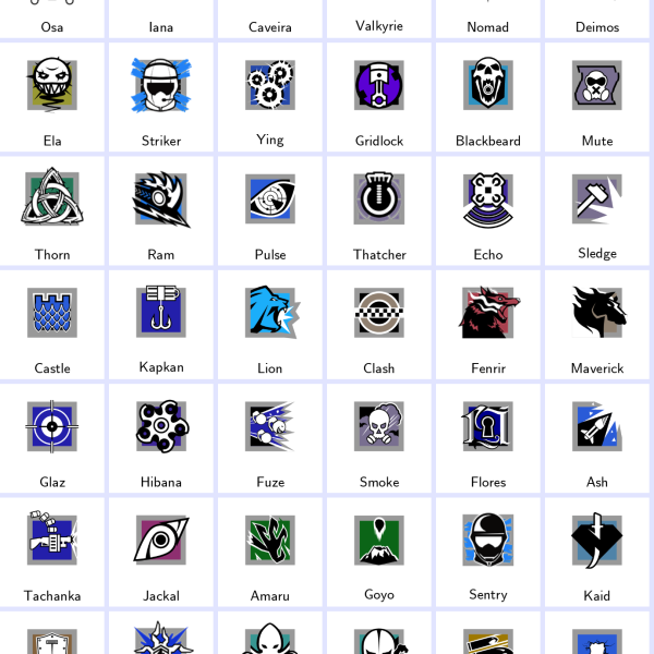 Some Operators: Frost, Nokk, Lesion, Doc, Iq, Thunderbird, Ace, Vigil, Grim, Mozzie…