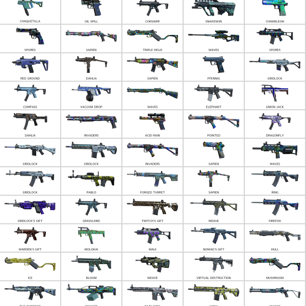 – SPAS-12, 1911 Tacops, AK-74M, Bearing-9, SR-25, P-10C, SPAS-15, P229, LFP586, AR33…
