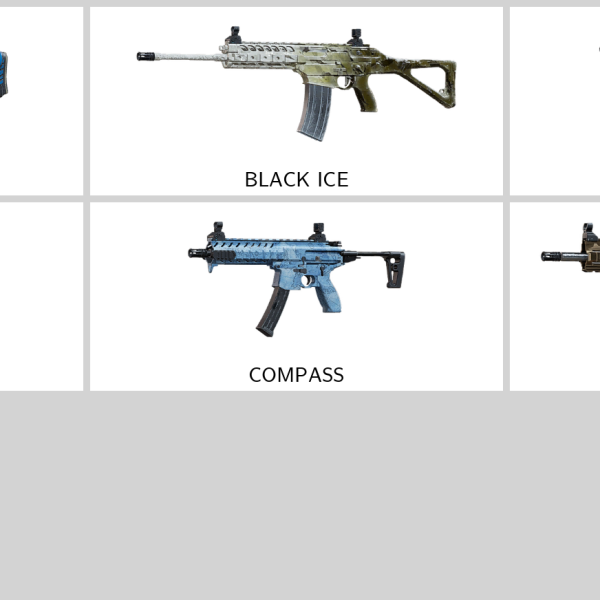 – Flight of Triumph (M12), Sharp Vendetta (Spear), Scavenged Wonder (PARA-308), Subatomic Beam (556XI), The Old Stock (L85A2), Scavenged Wonder (CAMRS)…