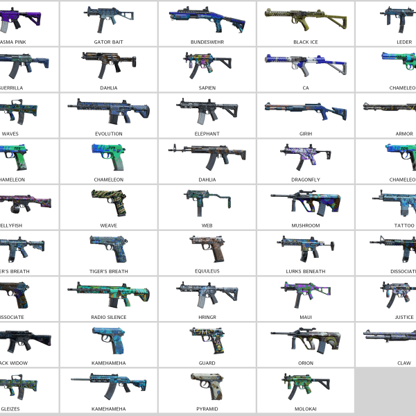 Some of Other Skins: Bundeswehr (P12), Industrial (9x19VSN), Primal Soil (MP5), On Wings Of Pearl (9mm C1), Smoky Murk (SIX12 SD), Datum Processor (AUG A3), Warning Bite (AR-15), Bygone Remnant (417)…