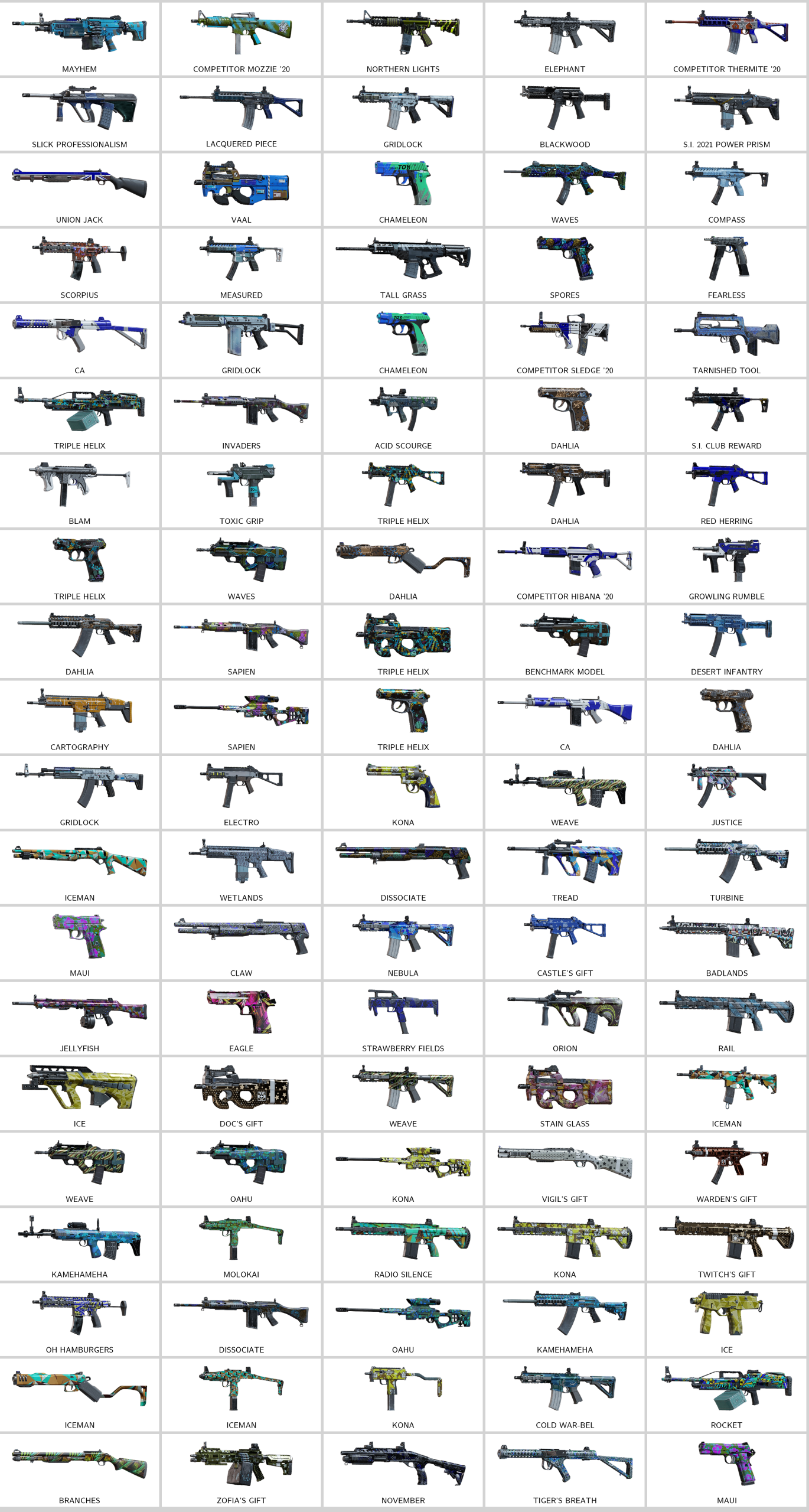 Some of Other Skins: Verkh (9x19VSN), Mission Blacksmith (9mm C1), Snakeskin (P10 Roni), Snakeskin (DP27), High Circuitry (Commando 9), Competitor Caveira ’20 (M12), Bundeswehr (P12), High Circuitry (M1014)…
