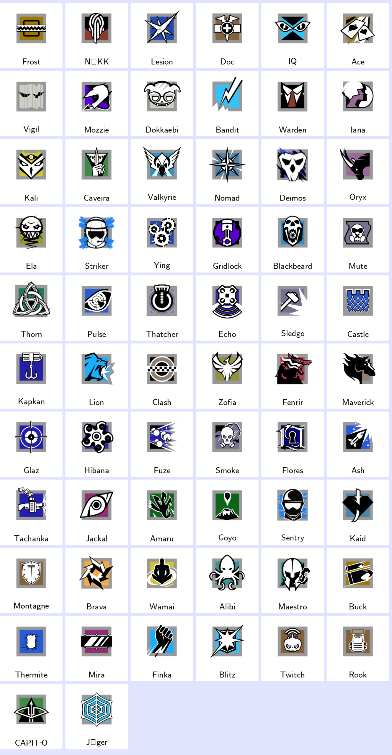 Some Operators: Frost, Nokk, Lesion, Doc, Iq, Ace, Vigil, Mozzie, Dokkaebi, Bandit…