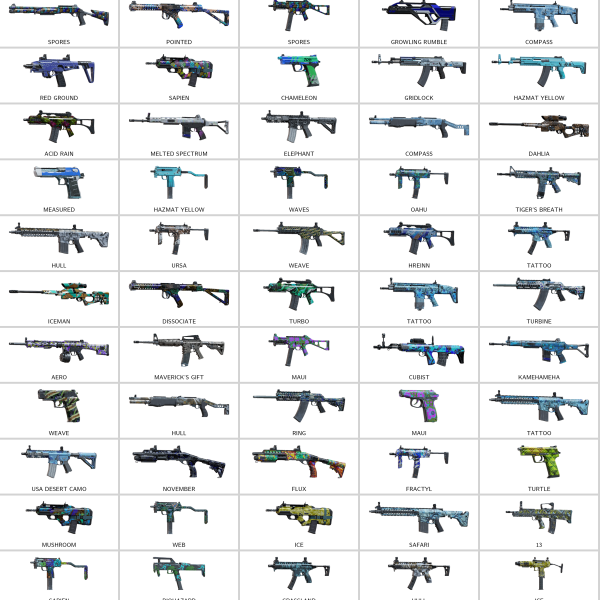 – Supernova, CSRX300, 1911 Tacops, R4C, MPX, Blitz Shield, 417, ITA12L, Montagne Shield, PMM…