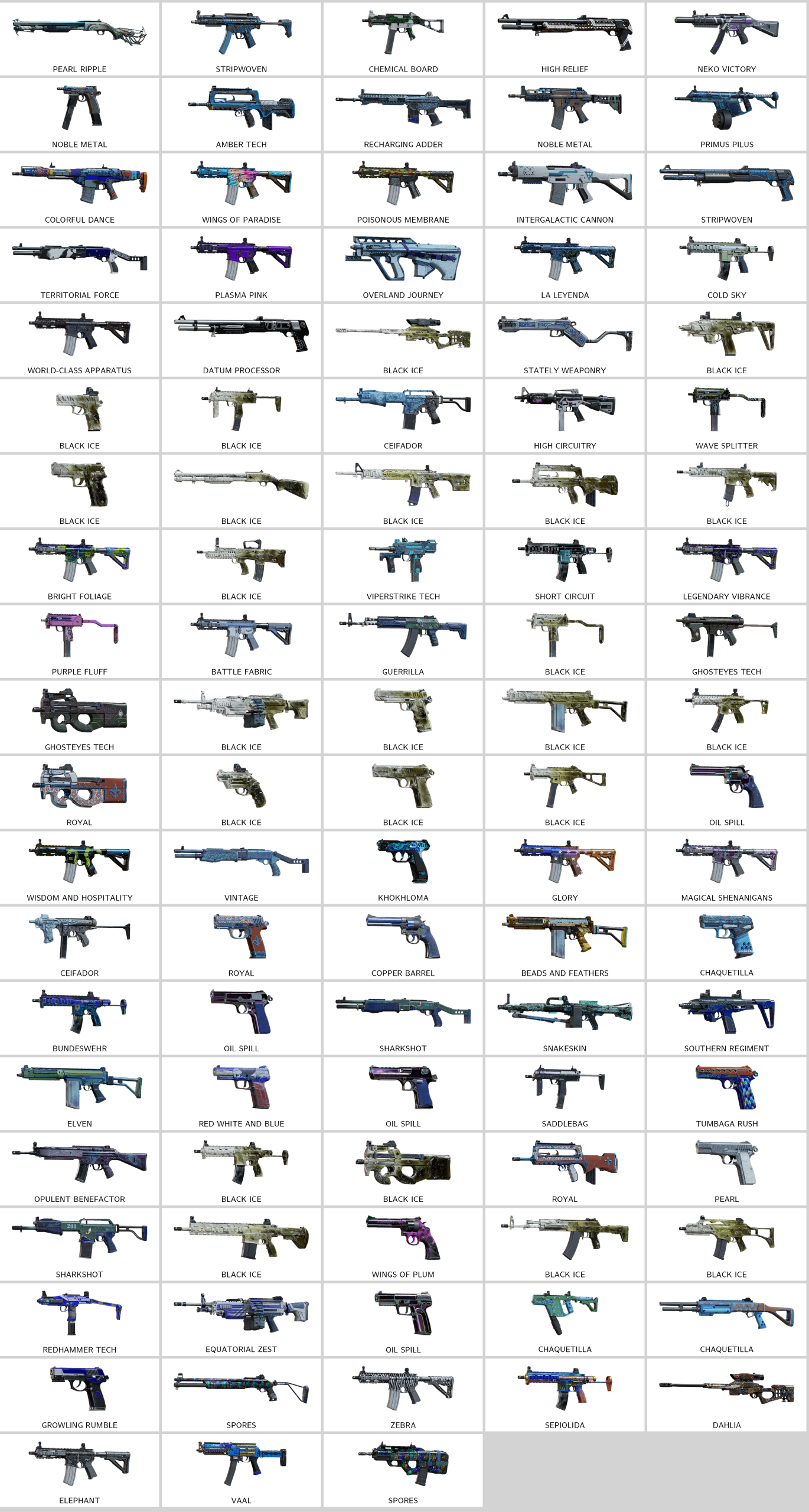 Some of Other Skins: Verkh (9x19VSN), Lacquered Elegance (F2), Predator Fate (CSRX300), Gleipnir (MP7), Swift Ammunition (MP5), High Circuitry (Commando 9), Datum Processor (Super 90), Bundeswehr (MP7)…
