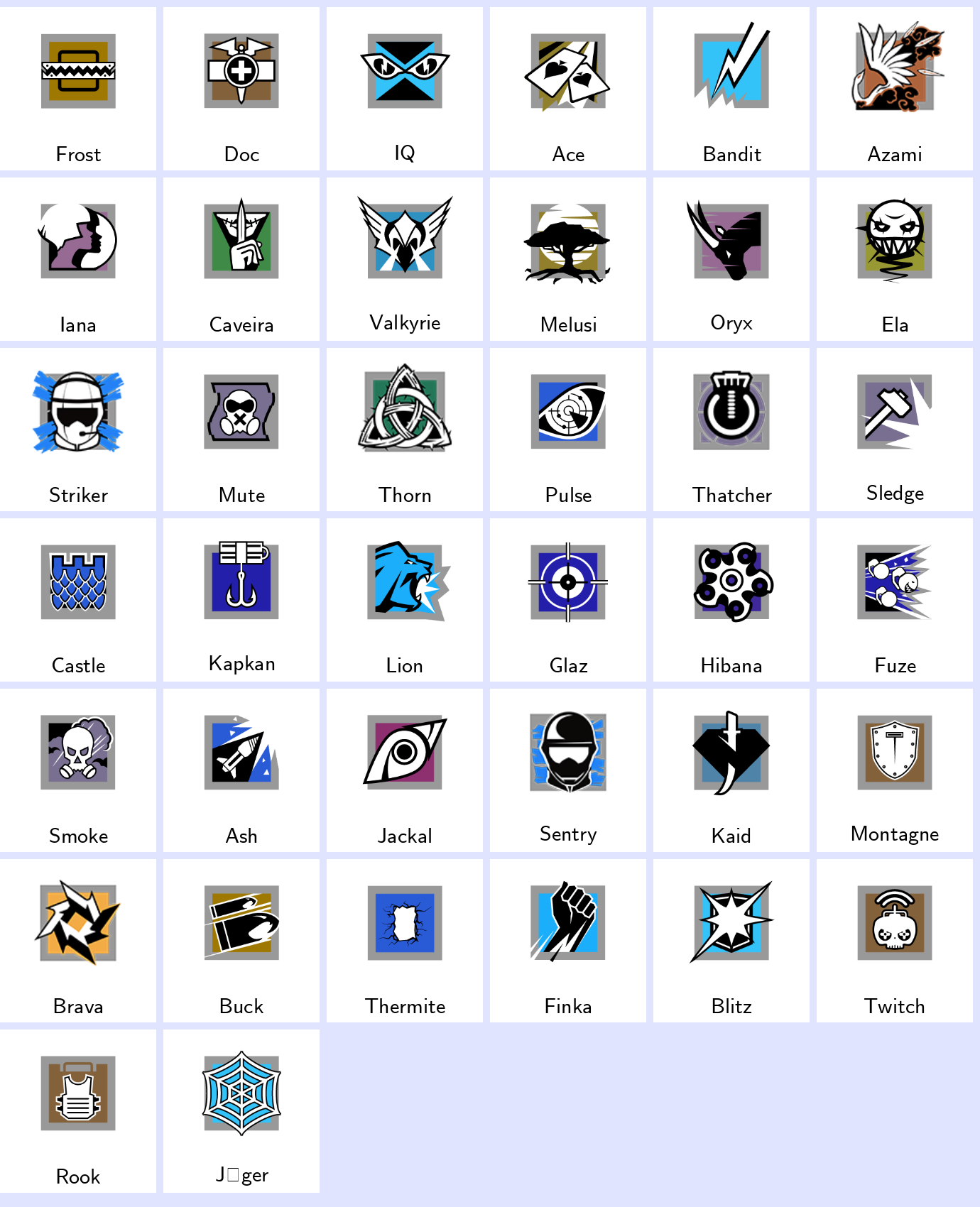 Some Operators: Frost, Doc, Iq, Ace, Bandit, Azami, Iana, Caveira, Valkyrie, Melusi…
