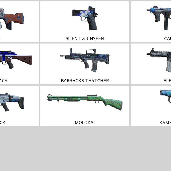 Some of Other Skins: Competitor Caveira ’20 (M12), Royal (SG-CQB), Vintage (SPAS-12), Competitor Mozzie ’20 (Commando 9), Datum Processor (T-5 SMG), Bomberos (ITA12L), Royal (MP5), S.I. 2020 Chevron Dark (MPX)…