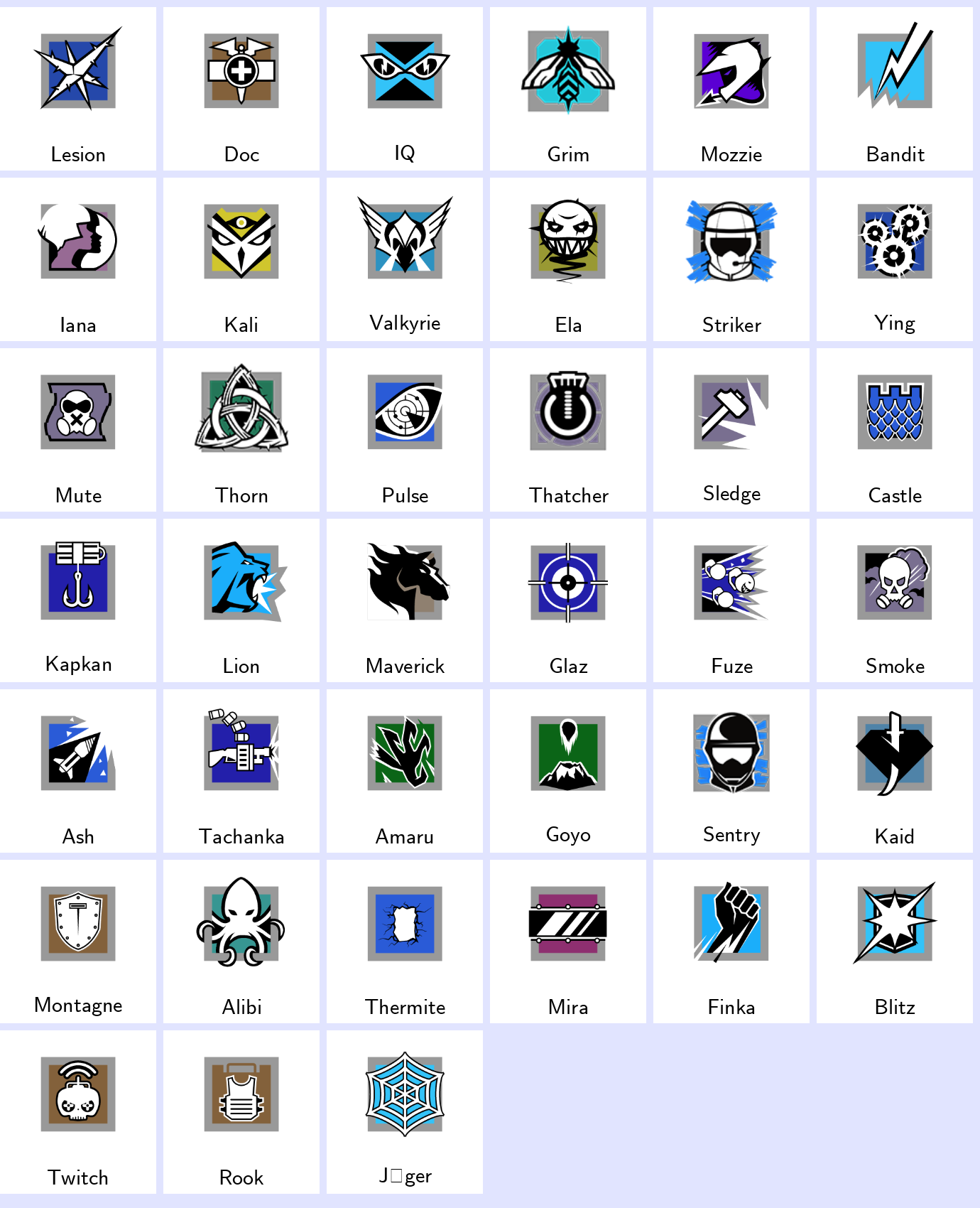Some Operators: Lesion, Doc, Iq, Grim, Mozzie, Bandit, Iana, , Kali, Valkyrie…