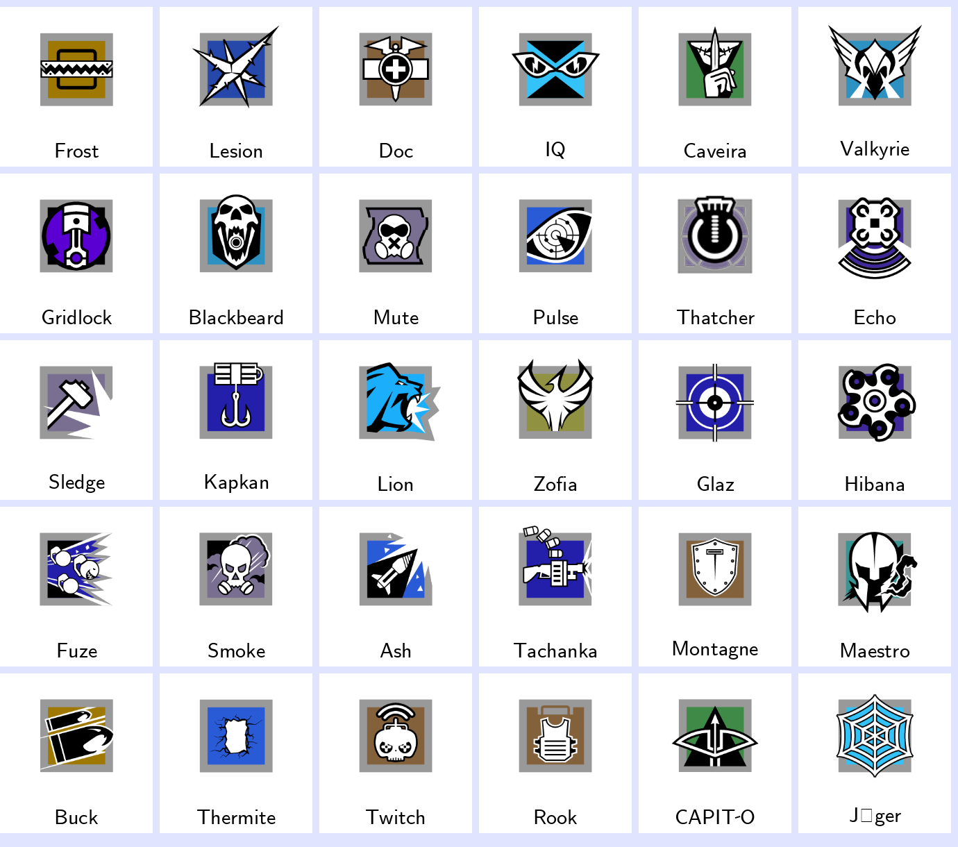 Some Operators: Frost, Lesion, Doc, Iq, Caveira, Valkyrie, Gridlock, Blackbeard, Mute, Pulse…