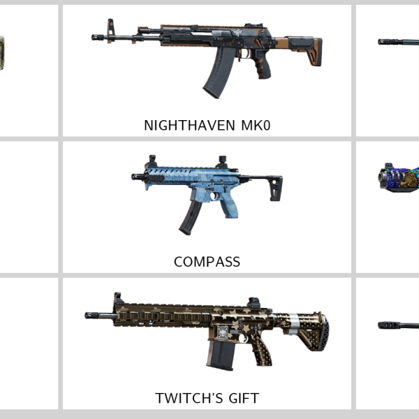 – Air Raid (CSRX300), Glazed Waffle (AR-15), Mythical Majesty (ARX200), Trooper Gun (416-C), Military Tarp (AUG A3)