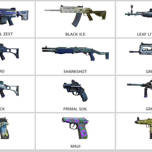 – Dark Depths (L85A2), Speed Shooter (416-C), Glazed Waffle (1911 Tacops)