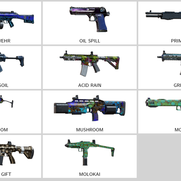 Some of Other Skins: Target (R4C), Restricted (G36C), Primal Soil (SPAS-12), Moku (P229), Slate (P12), Crisis Protection (M1014), Venetian LMG (ALDA 5.56), Compass (MPX)…