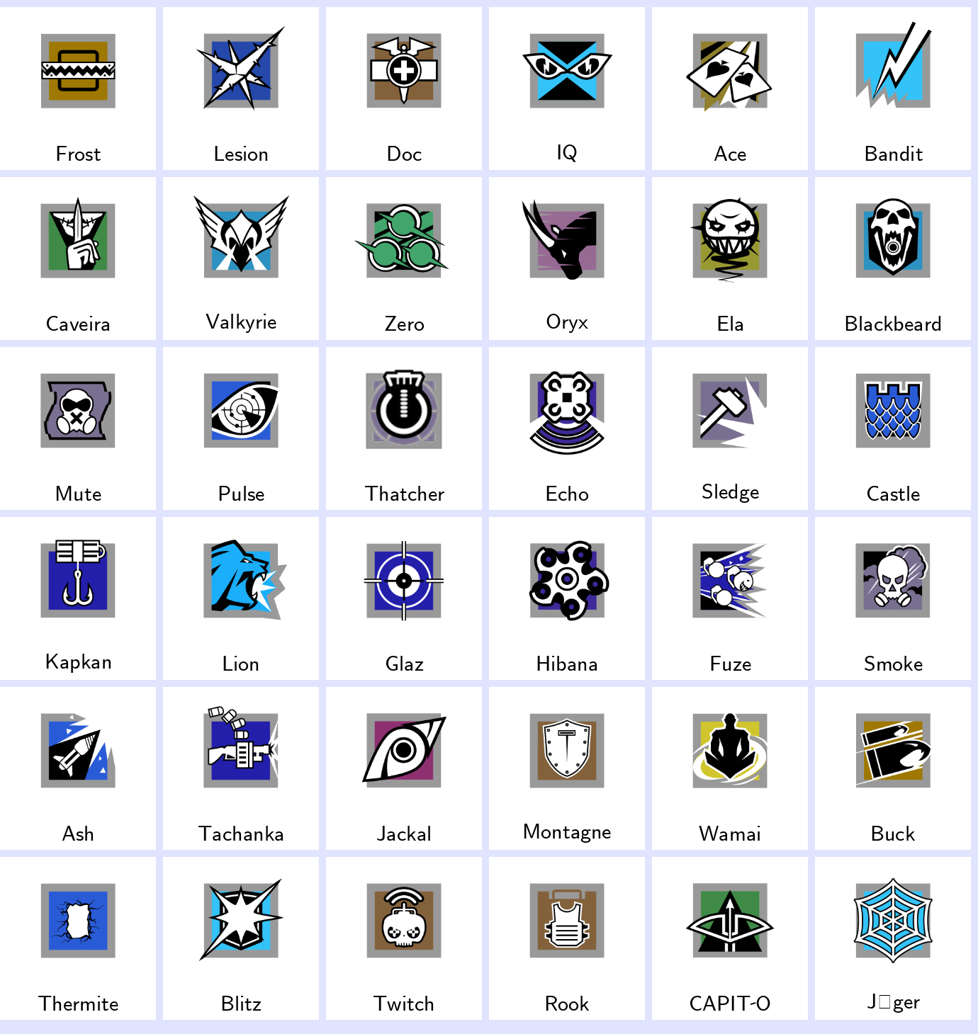 Some Operators: Frost, Lesion, Doc, Iq, Ace, Bandit, Caveira, Valkyrie, Zero, Oryx…