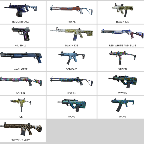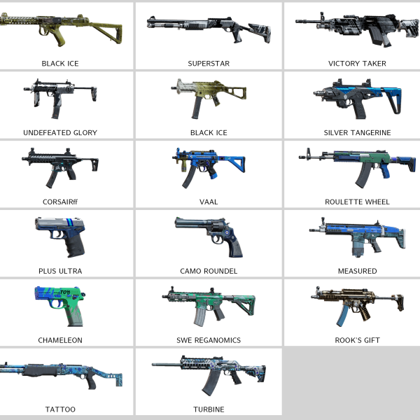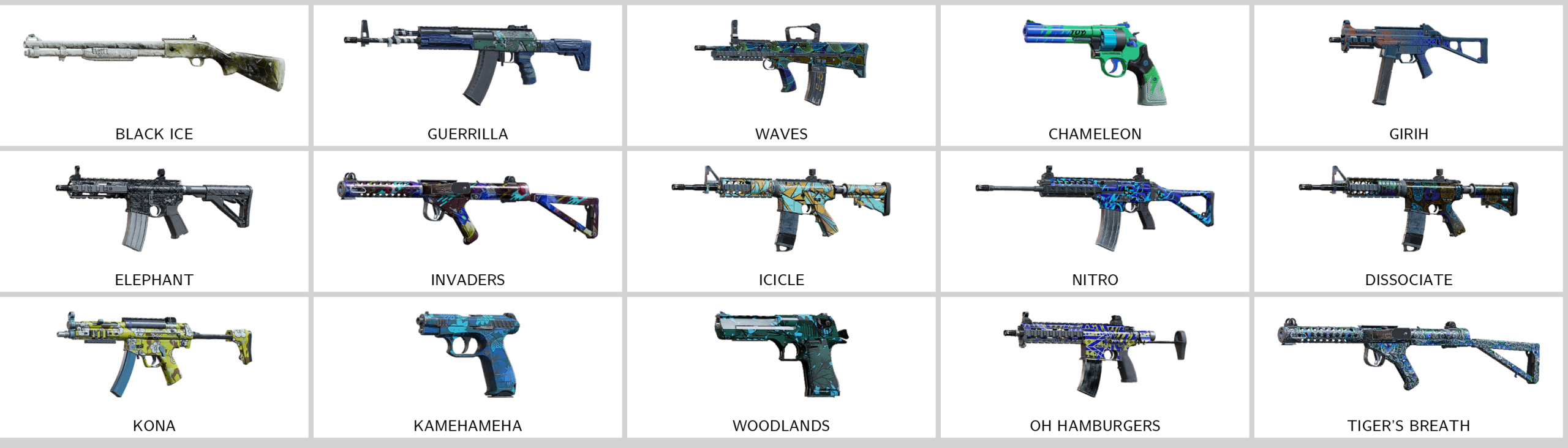 Some of Other Skins: Graviert (M870), Black Tiger (SIX12), Waves (L85A2), Sapien (M590A1), Chameleon (LFP586), Girih (UMP45), Invaders (9mm C1), Icicle (C8-SFW)…