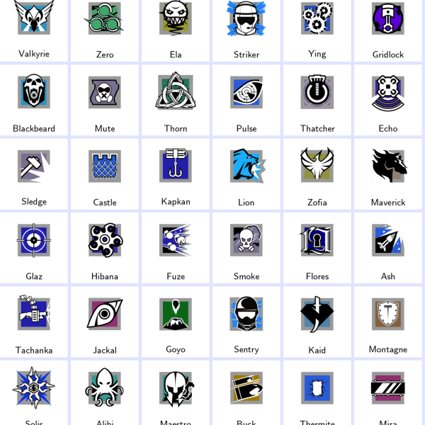 Some Operators: Frost, Nokk, Lesion, Doc, Iq, Thunderbird, Ace, Vigil, Grim, Mozzie…