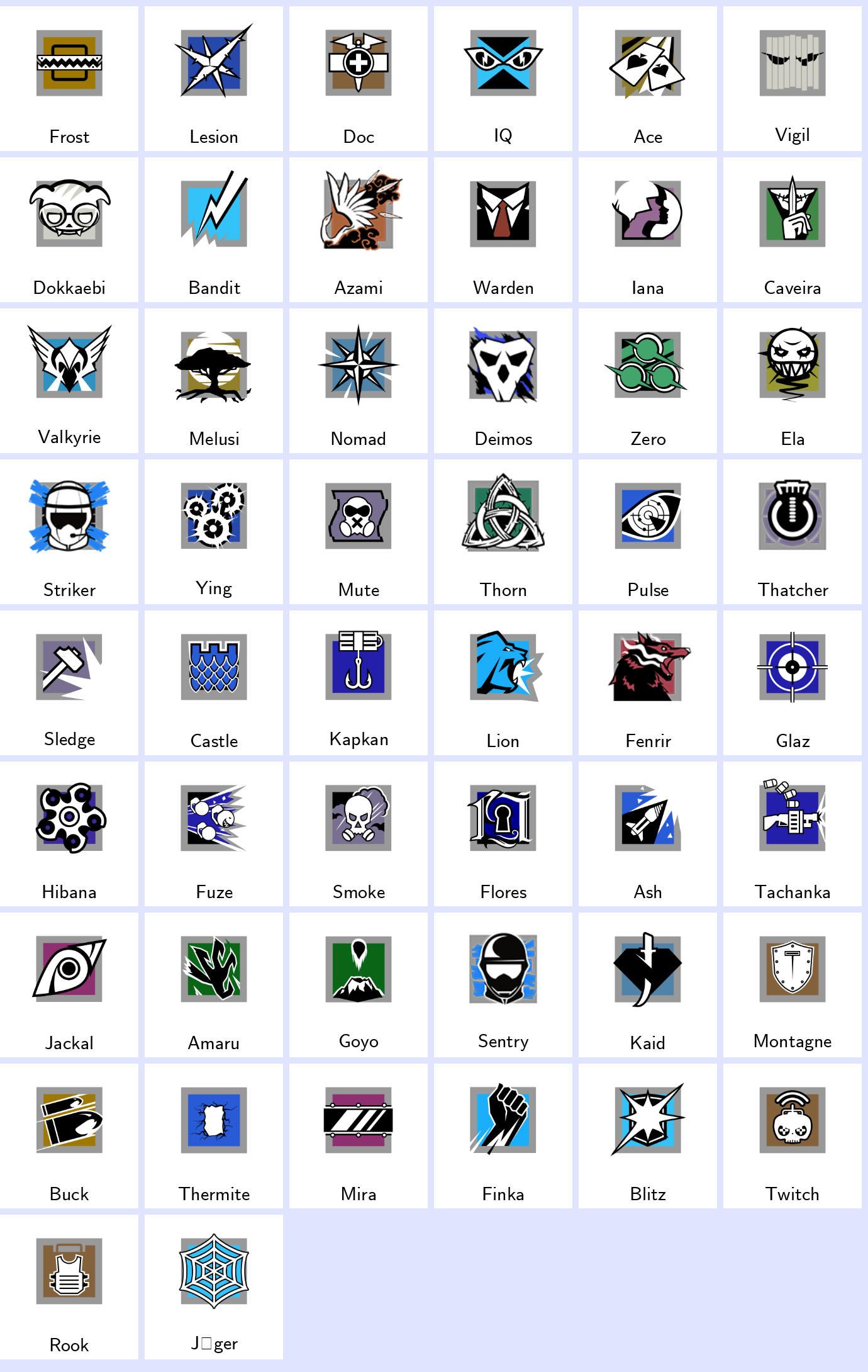 Some Operators: Frost, Lesion, Doc, Iq, Ace, Vigil, Dokkaebi, Bandit, Azami, Warden…