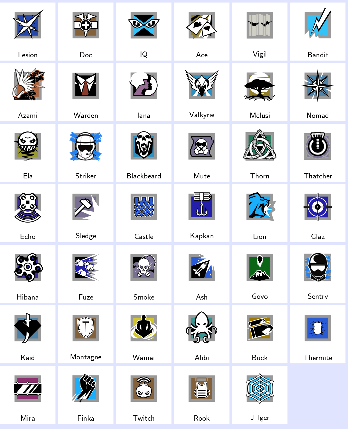 Some Operators: Lesion, Doc, Iq, Ace, Vigil, Bandit, Azami, Warden, Iana, Valkyrie…