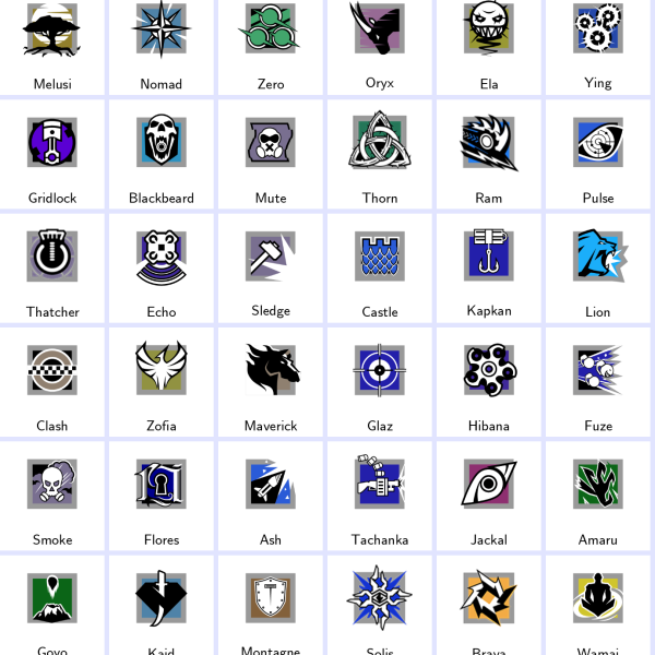 Some Operators: Frost, Nokk, Lesion, Doc, Iq, Ace, Vigil, Grim, Mozzie, Dokkaebi…