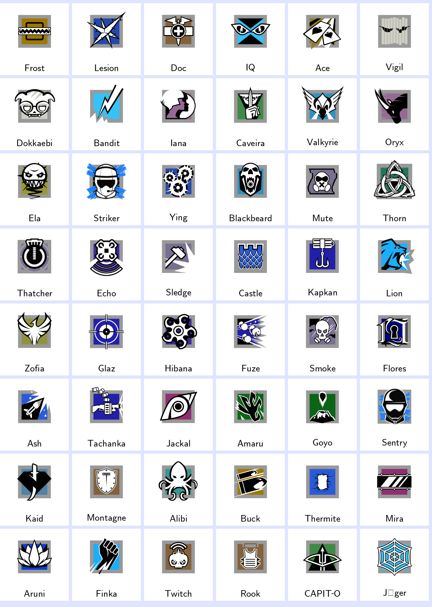 Some Operators: Frost, Lesion, Doc, Iq, Ace, Vigil, Dokkaebi, Bandit, Iana, Caveira…