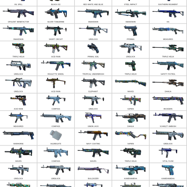 Some of Other Skins: Coliseum Polymer (G36C), Ceifador (SPAS-15), Target (R4C), Leder (552 Commando), Bundeswehr (416-C), Structural Scales (SMG-12), Oil Spill (P229), Leder (416-C)…